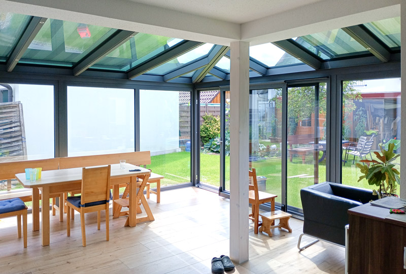 Sommergarten in der Farbe RAL 7016 Feinstruktur. Innenliegende Statik [...]